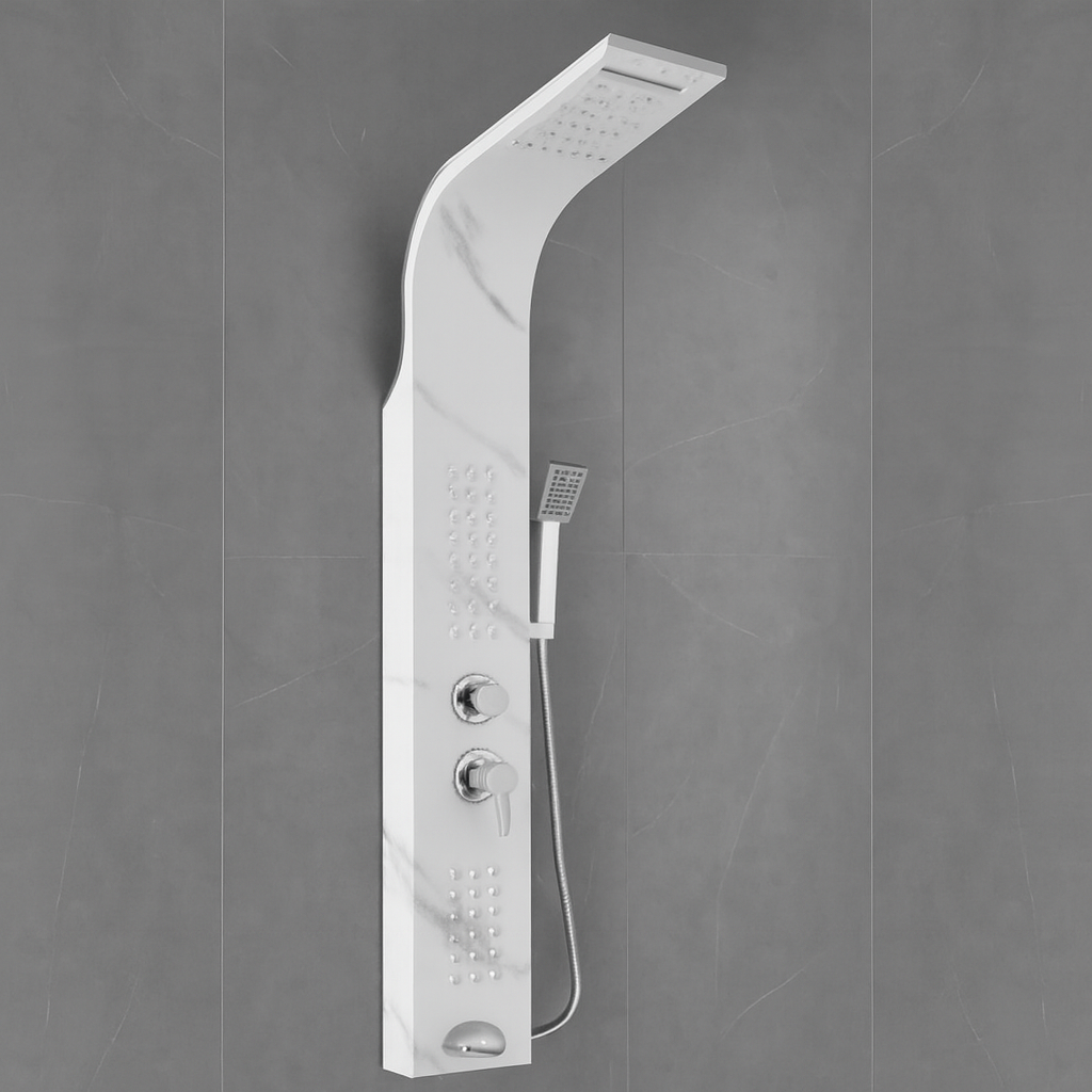 La Columna de Ducha Mármol Blanco aporta una sensación de pureza, lujo y serenidad a tu baño. Su diseño versátil se adapta a cualquier estilo, convirtiéndose en el complemento perfecto para espacios modernos y sofisticados.