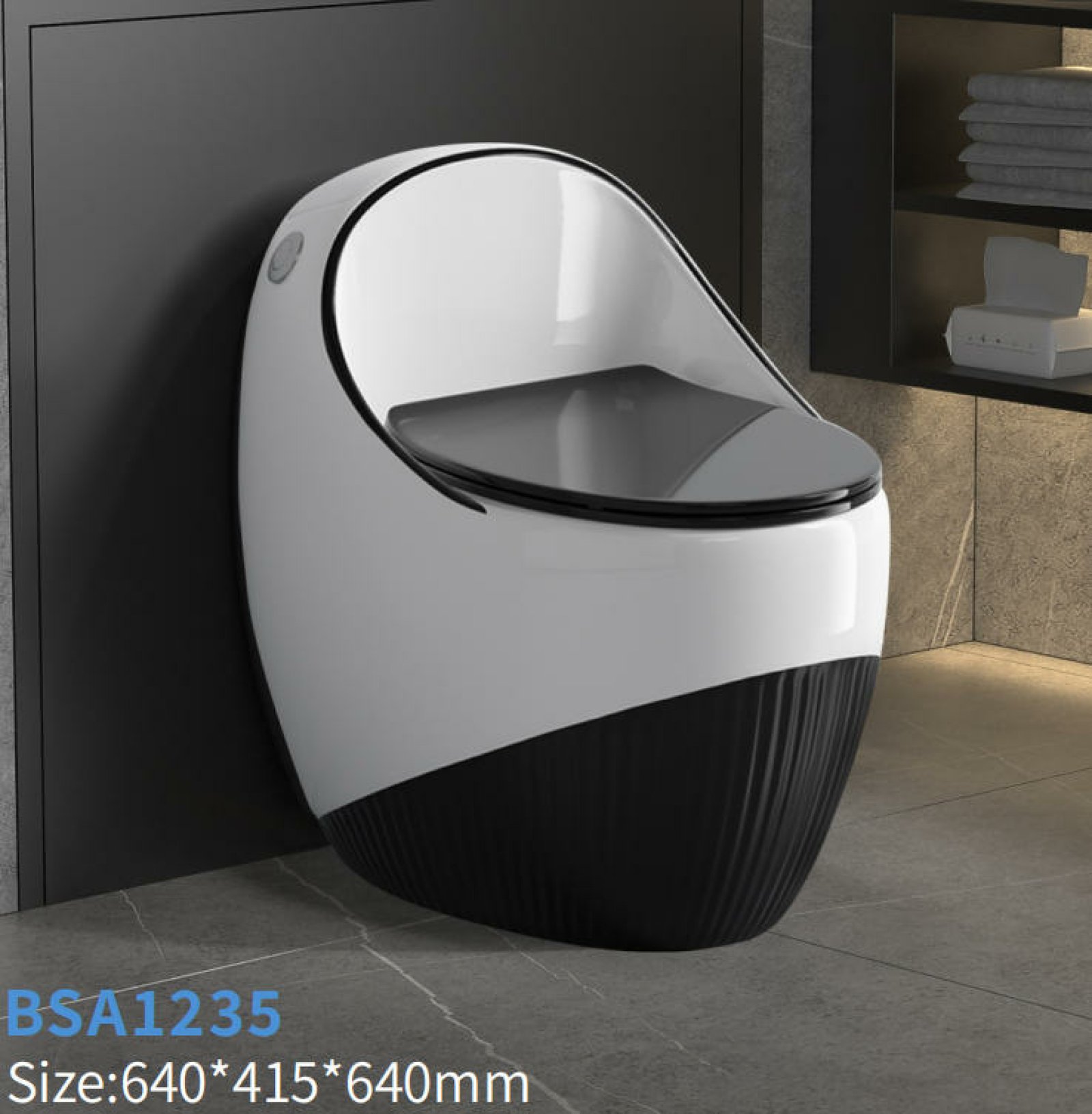 El Inodoro Blanco Tipo Huevo Dual Design destaca por su diseño moderno y elegante que combina formas orgánicas con contrastes contemporáneos. Su estructura tipo huevo aporta una estética envolvente y minimalista, mientras que la combinación de blanco brillante en la parte superior y negro texturizado en la base crea un efecto visual sofisticado y diferenciador.