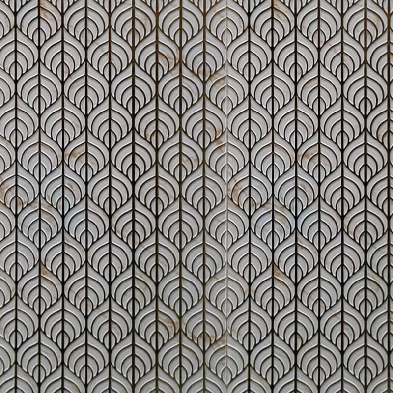 Diseño decorativo tipo pluma con relieve geométrico.